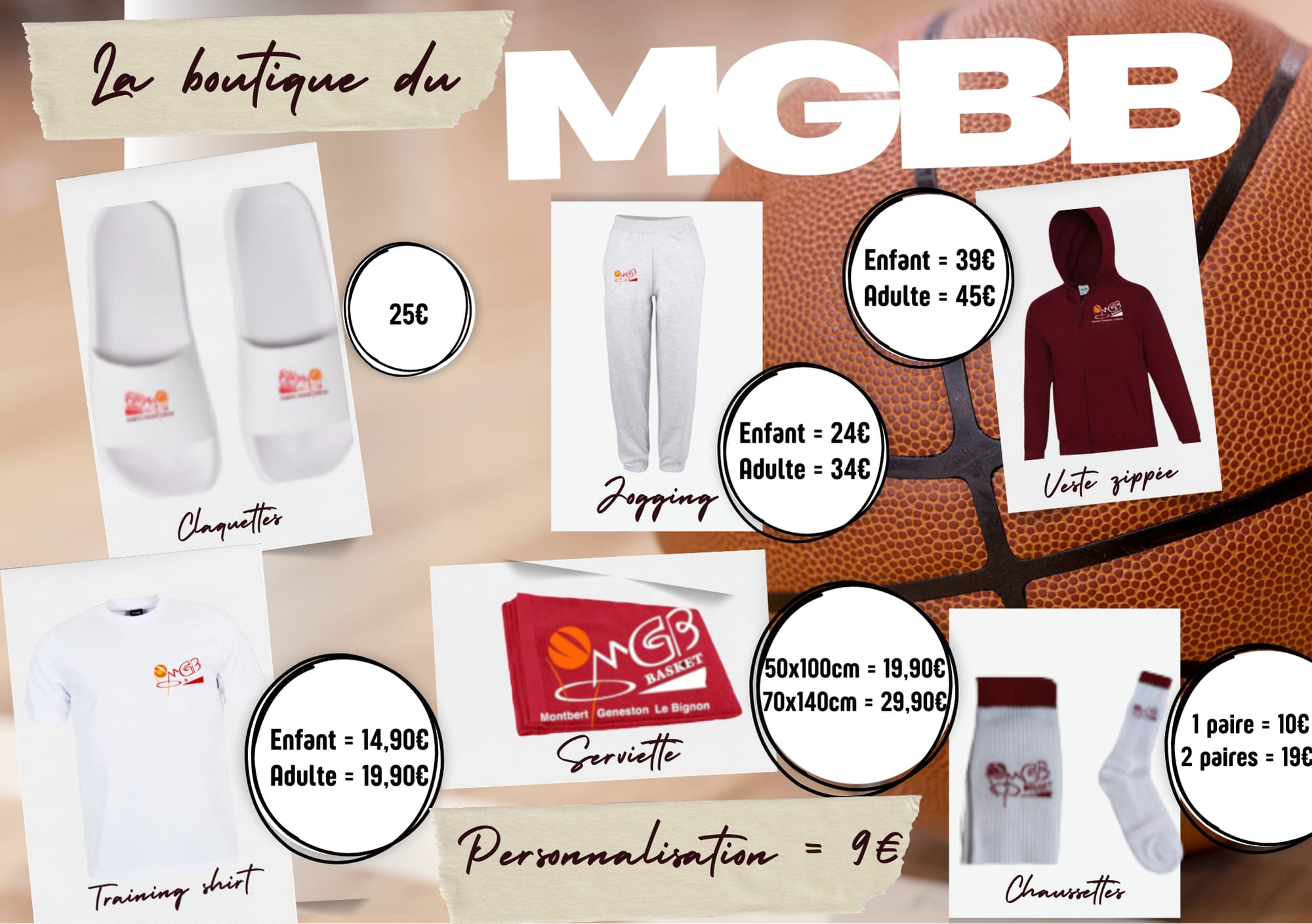 Pour les commander, télécharger le bon de commande ici (délai moyen 4 à 5 semaines hors chaussettes) et faites le parvenir accompagné du règlement (chèque à l’ordre du MGB Basket, ou espèces) à Pierre-Jean Hillairet.