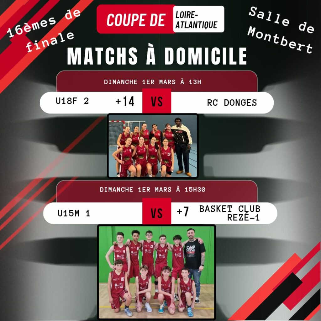 Cedimanche 1er mars, 4 équipes du MGBB vont participer au 16eme de finale de la coupe de Loire-Atlantique. Venez nombreux les encourager.